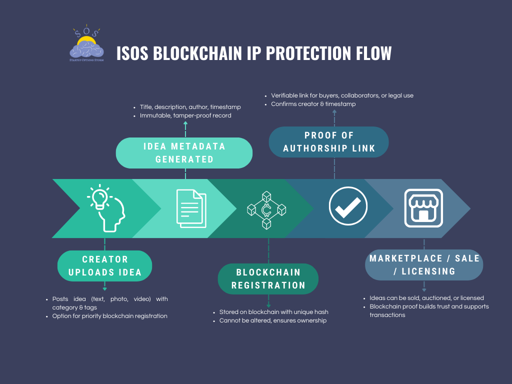 ISOS combines social networking, blockchain verification, and marketplace economics into one ecosystem, turning ideas into assets, sharing them, funding them, and selling them in one app.